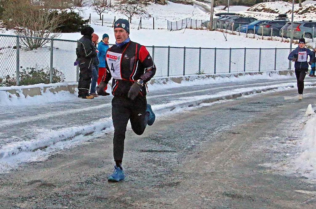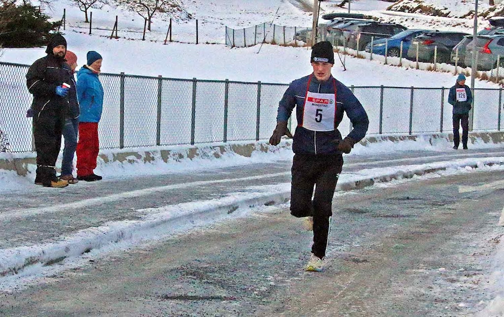 Ungguten Trym Eknes gav Jo-Harald Færø kamp lenge i løpet. Først på dei siste 100 meterane inn til mål drog Jo-Harald i frå og sikra seg sigeren. For 30. gong var han raskaste mann rundt Eikangervågen. Trym leverte eit av dei beste løpa sine nokon gong. Trass til dels glatte fohold var han berre 15 sekund etter bestetida si.
